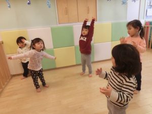 歌やダンスが大好きな子どもたち室内でも動き続けると