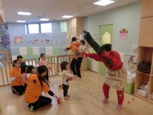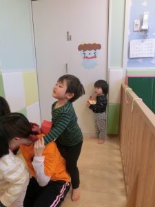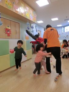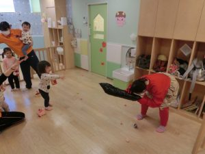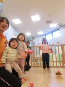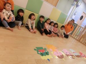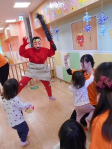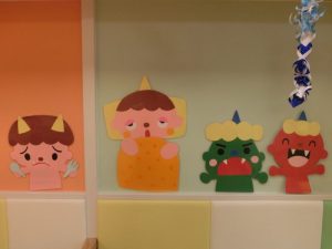 園では、節分があり鬼を追い払うと共に健康に過ごせるよう祈り豆まきをしました