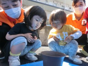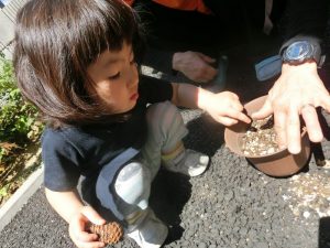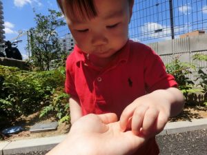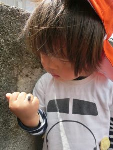 チョットドキドキしている様子で、ダンゴムシがどこに行くのか観察しました![]()