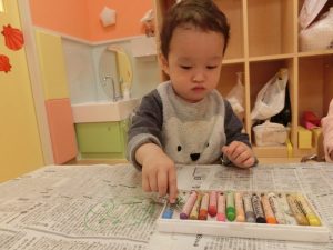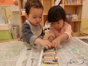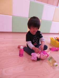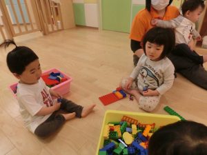 好きな色を重ねてつなげたり、電話の様に耳にあてて「もしも~し」と見立て遊びが始まったりみんな好きな遊び方を考えて遊ぶのが大好き![]()