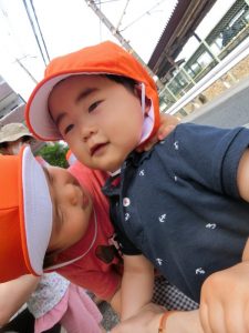その他、電車や車を見て、時にはバイバイと手を振る子どもたち![]()