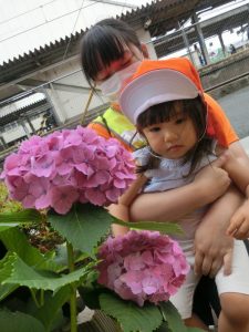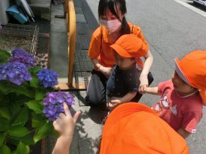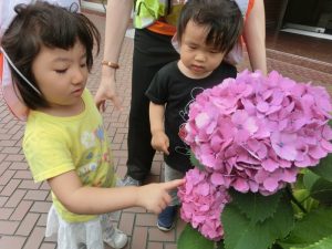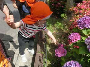 日に日に成長や色の変化するアジサイを見つけて季節の草花を楽しむ子どもたち![]()