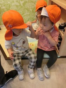 りんご組さんがいちご組さんのお世話をする姿も見られ、とってもホッコリしました![]()