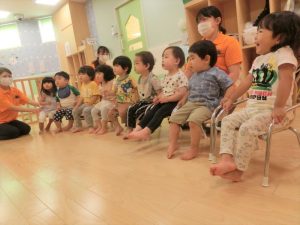 異年齢児との絵本の時間を通して、絵本のみならず、2歳児さんの座り方やお話に対してのリアクション、楽しい雰囲気を共有することができます![]()