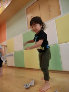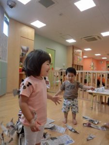 子どもたちは、梅雨の間いろいろな室内遊びを経験しています。