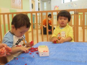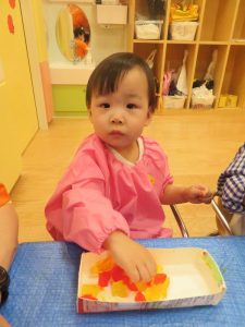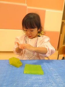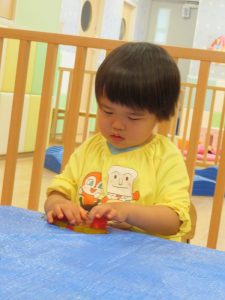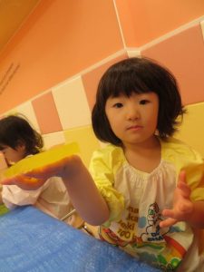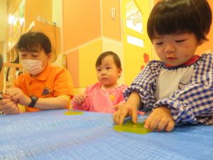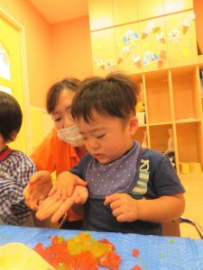 最初は、ドキドキしていても少しずつ感触遊びに慣れていくうちに遊びも大胆になっていきました![]()