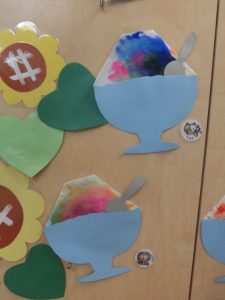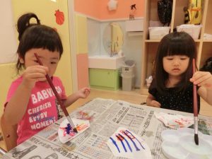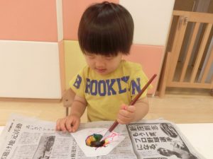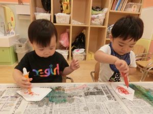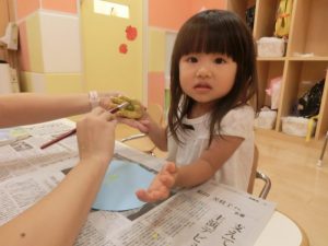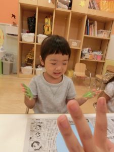 先程と違って絵具をおててにつけていますよ。