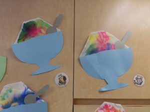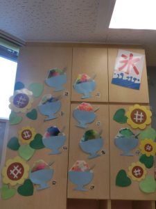 子どもたちのかき氷を飾り付けるとお祭りさながらの賑やかさと趣が出て、