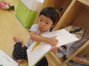 こちらでは、先生の真似っこをして読み聞かせをしてくれる子どもの姿も見られるようになりました![]()