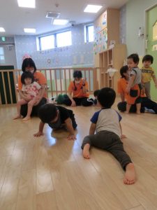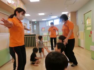 リズムに合わせて体を動かすリトミックでは色んな物に変身する子どもたち![]()