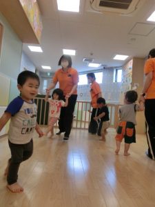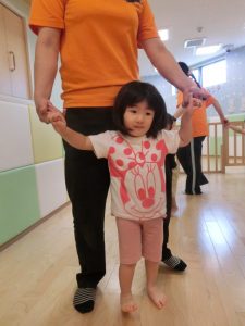 少しずつ慣れてきた子どもたち。歩く事にも挑戦です!!