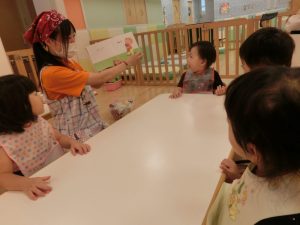 一日の中で読む沢山のお話を「今日は何のお話かな?」「登場人物は誰かな?」など