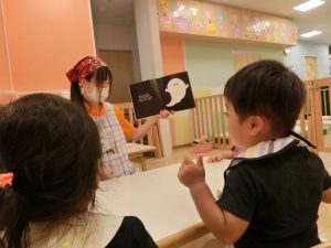 絵本の習慣がついてきた子どもたち保育士のお話を静かに聞くと同時に
