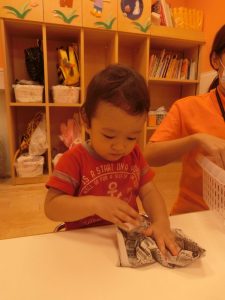 新聞紙をちぎって、ちぎって…