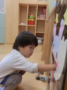 いろいろな題材の絵本をよく観察していたり、絵本の世界に入り込んでいく姿が見られます。