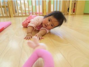 「私だって、マットの上からとび出して、目の前のおもちゃを取りにいくんだぁ❗️」
