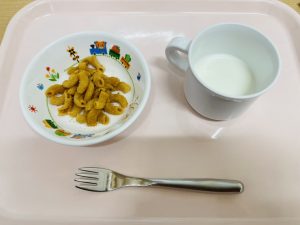 ※食べ終わるまでしっかりと座っていることが出来ていて、一生懸命食べています。離乳食を食べている子も、給食に慣れてきて残さずに食べています。