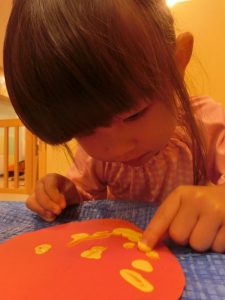 まず、指先に絵具をつけて~![]()