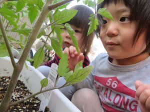 子どもたちは、ツンツンと触ってみたりジョウロでお水をあげたりして、お友だちとのやりとりを楽しまれています![]()