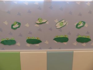 保育園の玄関にみんなの作品がペタリ![]()