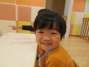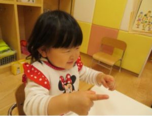 子どもたちは、思い思いの色を保育士に教えてくれています。
