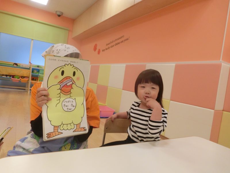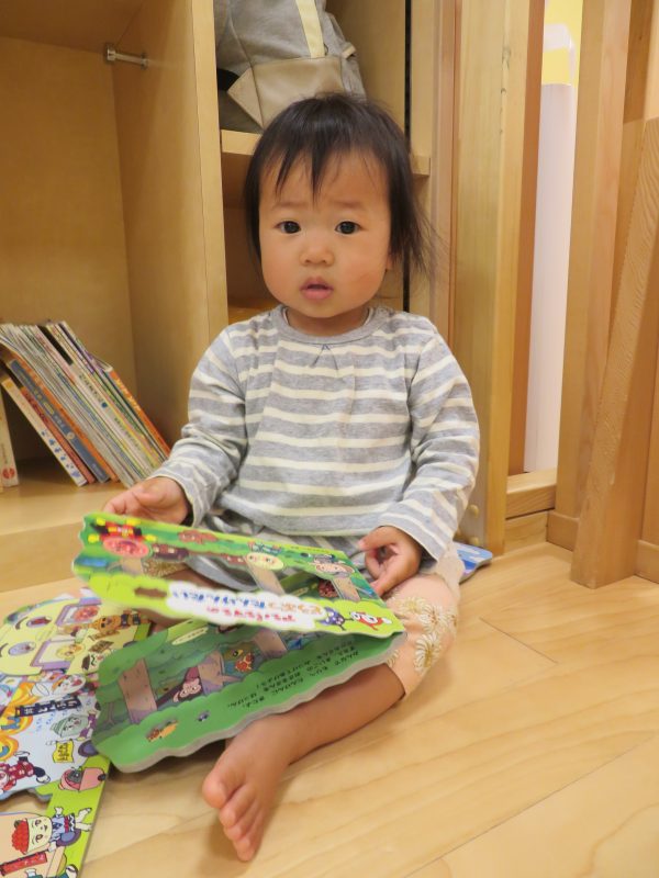 たまにはおやつ前の絵本タイムに参加して見たりして嬉しそうにしています。