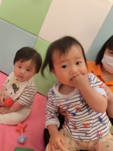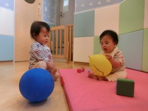マットの上でゴロゴロ寝転がって感触を楽しんだり、様々な玩具に触れて遊んだり![]()