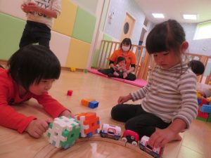 お友だちの側でそれぞれ好きな玩具を持ち寄って遊んだり~![]()
