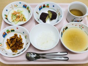 ご飯 味噌汁 チキンチャップ コールスローサラダ ふかし芋