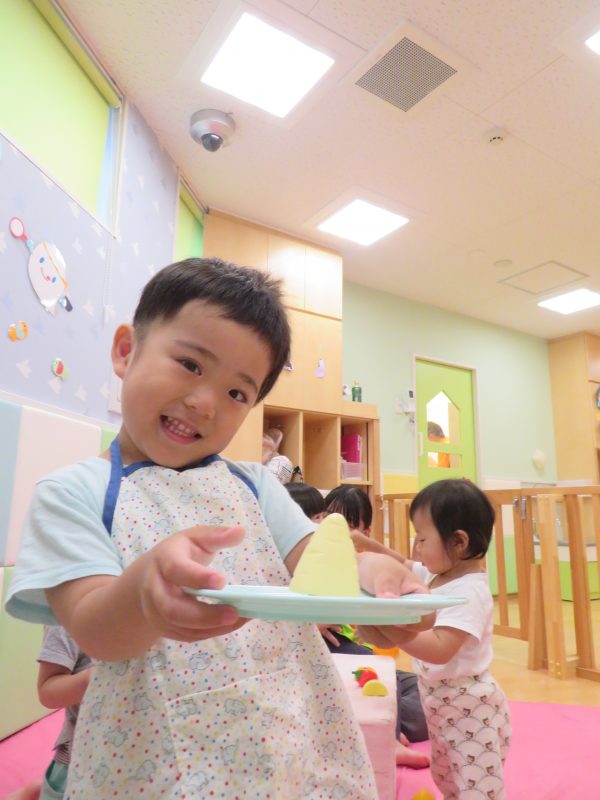 さて、お部屋ではおままごとに夢中な子どもたちです![]()