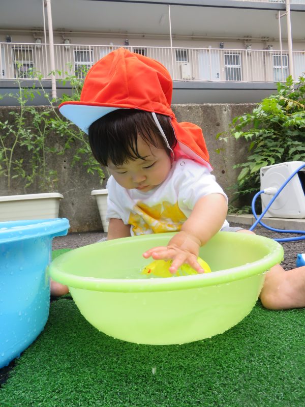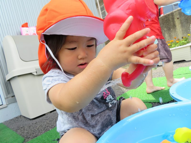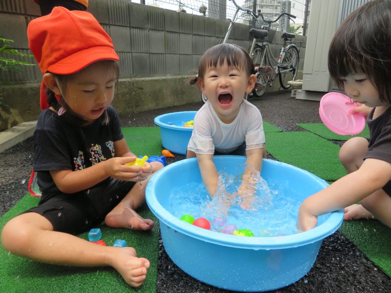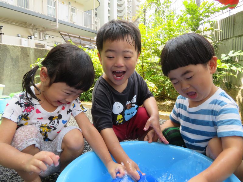 晴れた日には、保育園の裏にいき、お友だちと水遊びを楽しむ声がキャッキャ