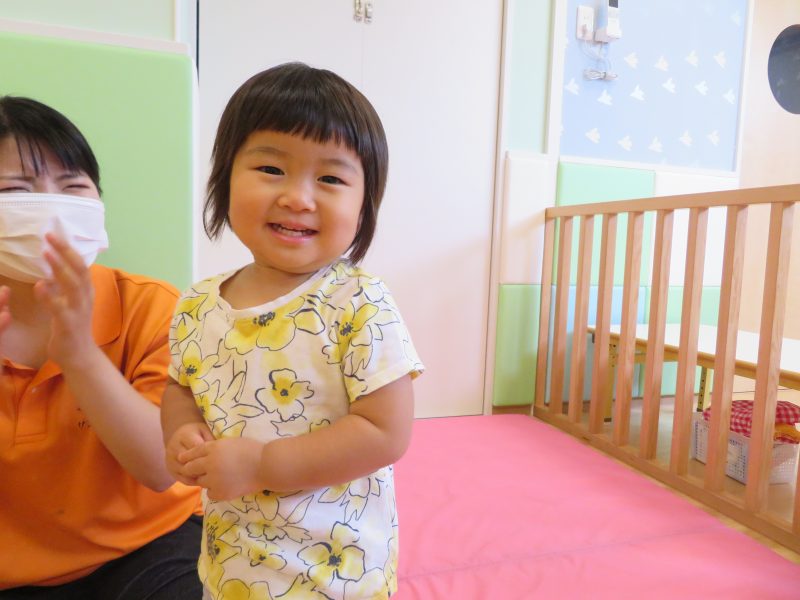 その姿を側でそっと見ている保育士たちもウキウキです![]()