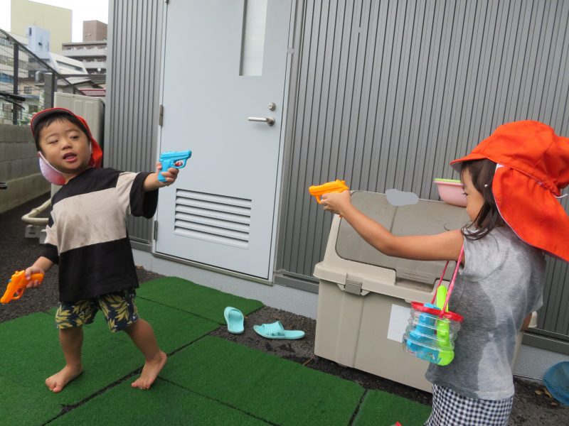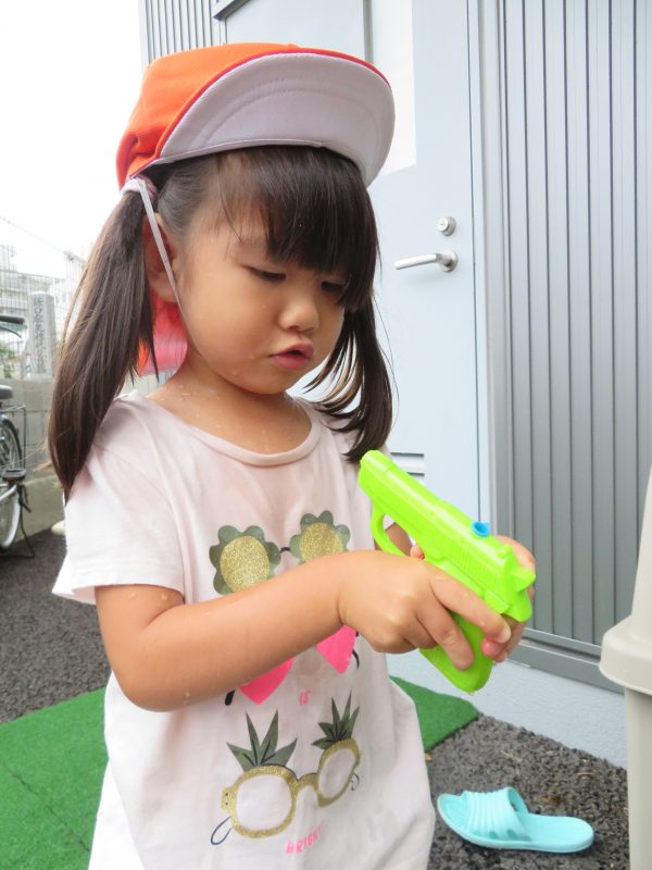 さて、水遊びでは、新たに水鉄砲を発見![]()