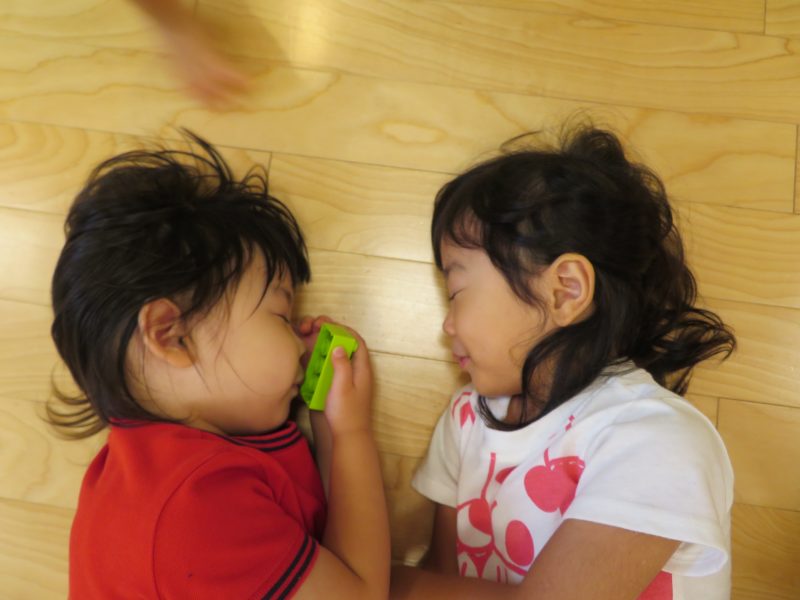 たくさん遊んだ後は、お友だちと一緒に休憩![]()