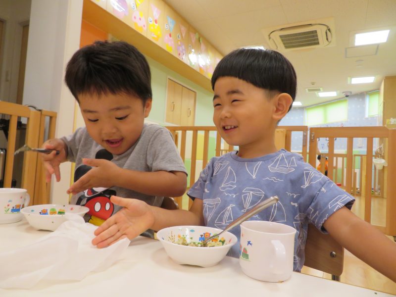 たくさん遊んだ後は、大好きなご飯タイム![]()