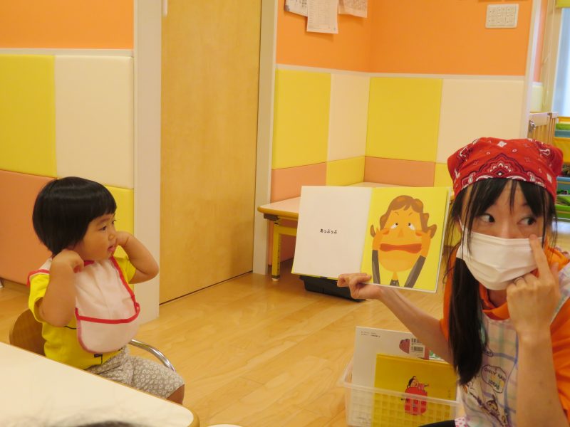 みんなが大好きな「あっぷっぷ」の絵本をみて、やりとりを楽しまれていました![]()