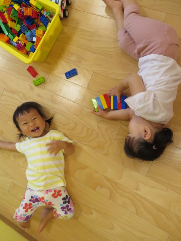自由遊びでまったりタイムをしていると、お友だちもお隣りにきて一緒にまったり![]()