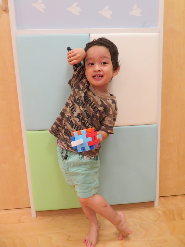 レゴブロックを繋げては、壊れたり思い通りにならず「もぉ~