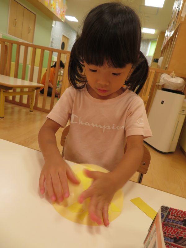 9月に入ったということで、行事と致しまして、十五夜会がございます十五夜とは、1年の中で1番きれいなまんまるの満月が見える日のことです。今年は、9月21日です十五夜会に向けて、子どもたちは、制作をしました