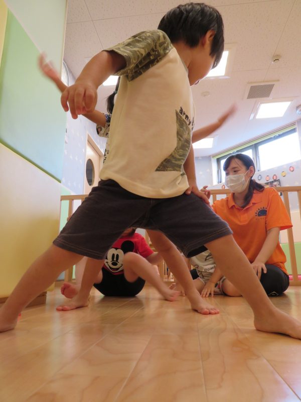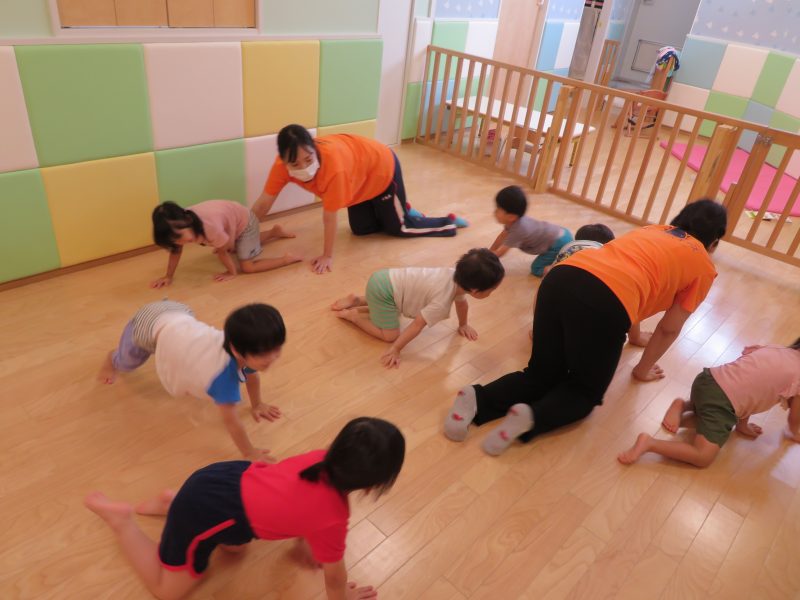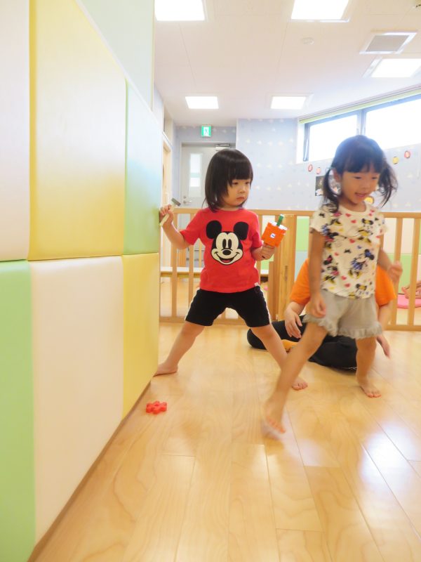 お壁にぴったんこして、保育士のポーズを真似っこする姿も可愛いらしかったです