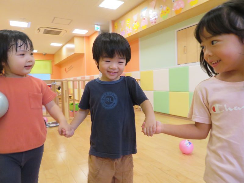 さて、こちらの写真でも、お友だちを意識して手を繋いで楽しげな様子が分かる写真が伝わってくるかと思います。