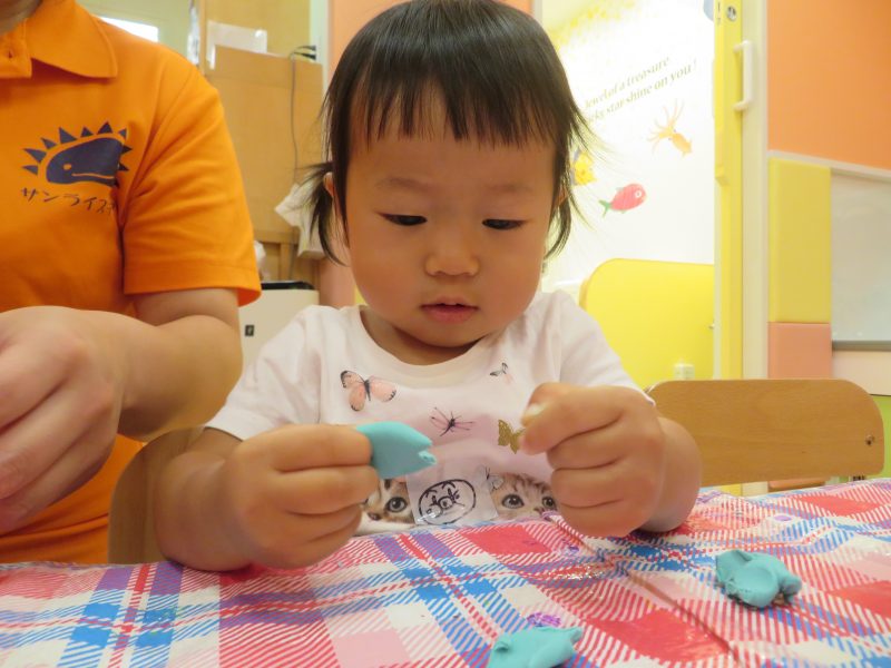 いちご組さんりんご組さんが作っていた粘土に興味津々