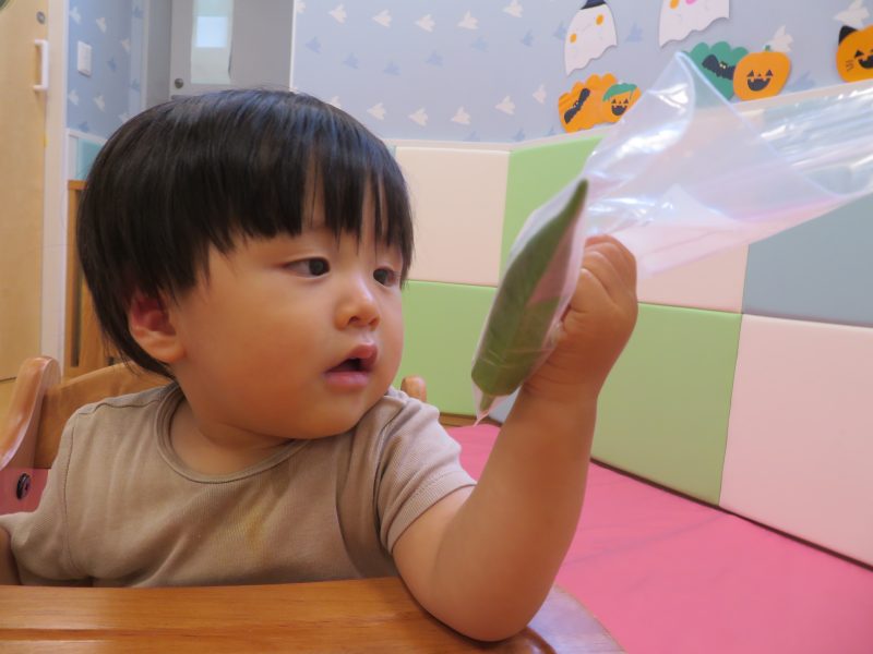 私は、保育士から受けとると、ツンツンと触って「なになになに」と興味津々で聞いていました