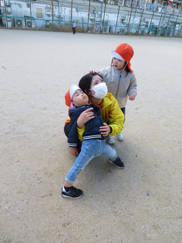 子どもたちもつい上を見上げて気持ちよさそうに見ていましたそれを、お友だちと一緒に見て共有できるのが、保育園の良い所ですよね