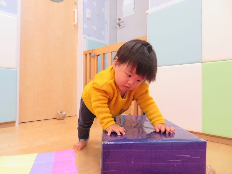 朝の会の後は、お遊びが始まります。すべり台では、楽しみながら順番待ちです