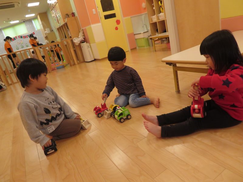 玩具を貸したくなかったお友だちは、3台の車を離れ離れにさせたくなかった玩具に対して、優しい思いがありました![]()