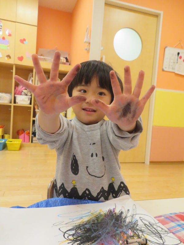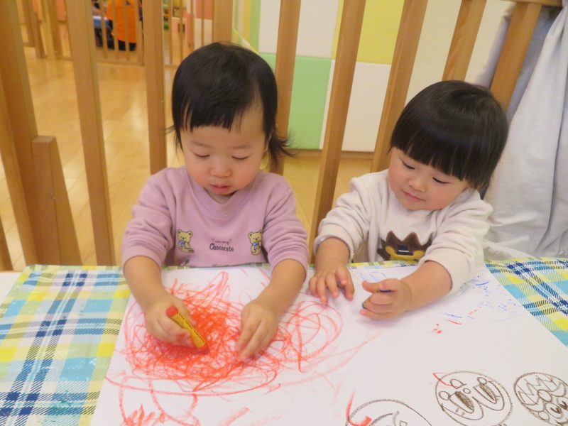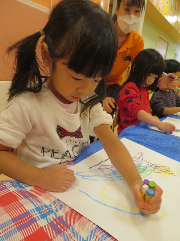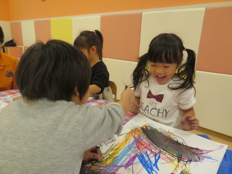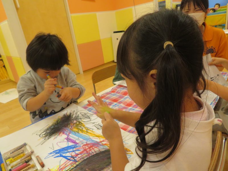 さてお部屋での活動では、みんなでお絵描きを楽しんでいる様子をご覧ください