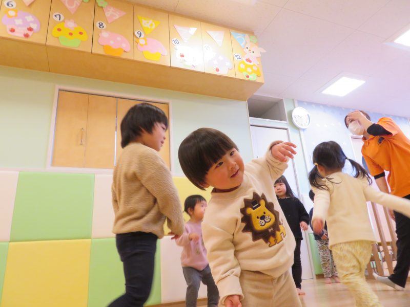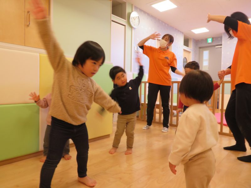 そして次の活動では、体操して遊びました
