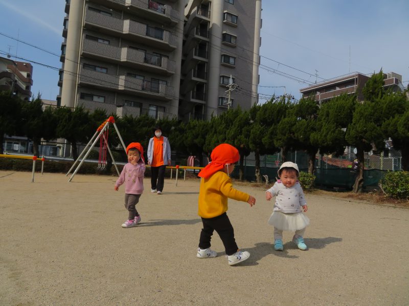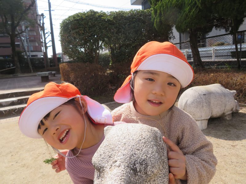子どもたちはお散歩に行くことができてウキウキさんです![]()