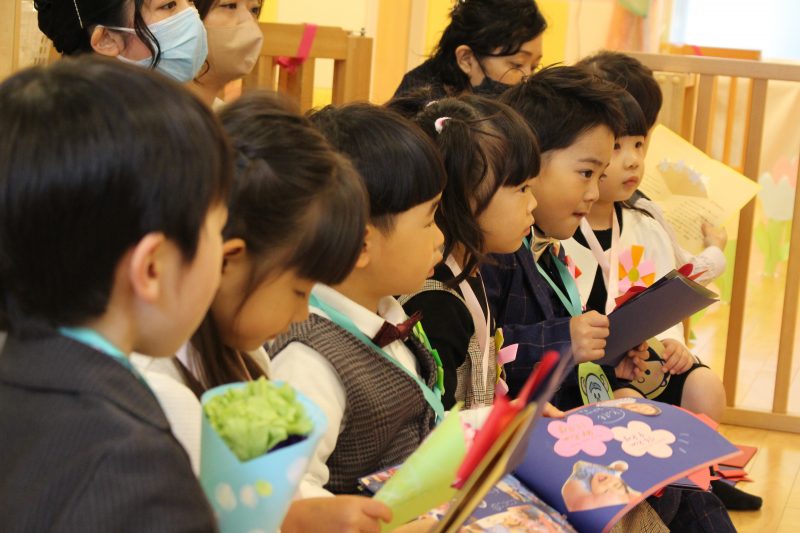 そして担任よりアルバムを受け取ったり、手紙を受け取ったりしました。受け取った後は、しばらくまじまじとページをめくるりんご組さんたち。1人ずつなにか感じ取るものがあるかのようでした。